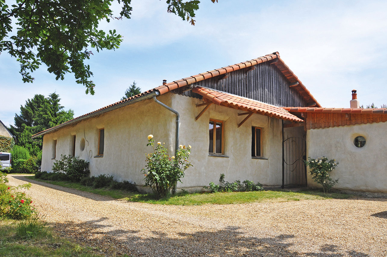 Quand ils achètent ce terrain nu à Montpollin, dans le Maine-et-Loire, ils envisagent d'y bâtir en rondins de bois. « Mais il fallait des engins de levage, l'acheminement du bois était compliqué, le prix dépassait notre budget… » Ils se renseignent sur le monomur : « des coûts astronomiques et on n'aime pas ce qui est trop droit. » Le « tilt » se produit en visitant la « maison 3 E »(1) – écologique, économique, entraide –, à Moisdon-la-Rivière (44), puis une autre en paille, en Mayenne, « où on nous a expliqué le maniement de la paille, la terre, la chaux... On s'est rendu compte qu'en choisissant des matériaux locaux et naturels, le chantier était plus à notre portée ».