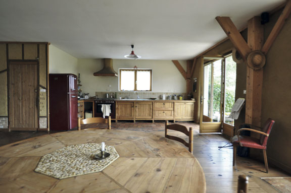 « On a emménagé en 2010 après un an de travaux, incluant la maison, l'atelier et les aménagements extérieurs, mais on a d'abord consacré deux ans à la préparation du projet, réfléchir à ce qui était faisable, peaufiner, dessiner les plans, estimer la durée de chaque phase et les quantités de matériaux, planifier, etc., précise Jean-Charles. Quand on a démarré les travaux, tout était programmé, on n'avait plus qu'à dérouler le planning. Et on n'attend pas d'avoir fini de poser un matériau pour réfléchir à ce qui se passera derrière ; on enclenche ce qui a été prévu à l'avance, les commandes pour que les matériaux suivants soient prêts... »