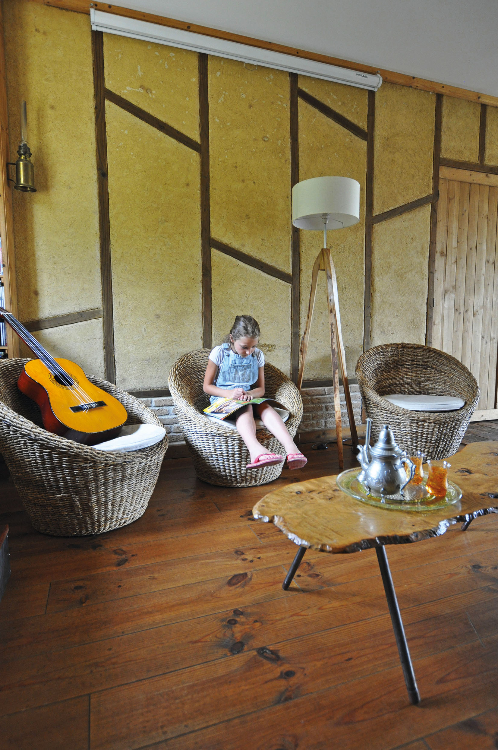 Et pour les parents, des travaux d'une telle ampleur n'ont-ils pas été épuisants ? « Du tout ! », rétorquent-ils en chœur. « On a été porteurs et en même temps portés par le projet tellement tout s'est bien enchaîné. Au début, certains proches qui ne connaissent pas l'écoconstruction s'inquiètent : la paille va prendre feu, ça ne tiendra pas 100 ans, l'autoconstruction est risquée... On s'est dit stop, ça nous met une pression, il ne faut pas qu'on s'encombre de choses négatives. On n'en a même pas parlé au boulot pour que les problèmes ne soient pas mis sur le dos d'une fatigue due au chantier. Notre métier en lui-même n'est pas toujours facile. »