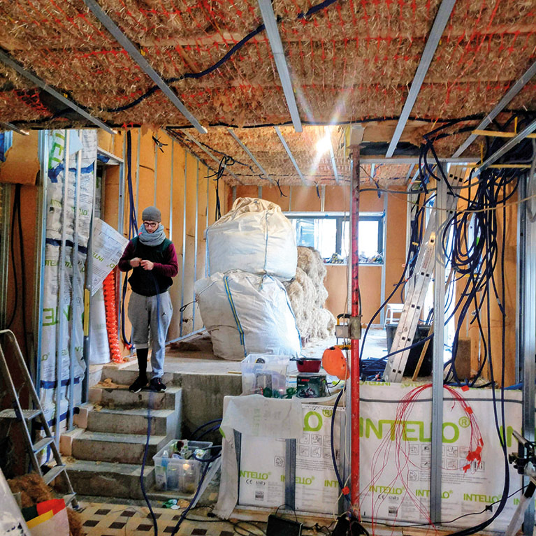 D'autant que l'isolation des murs se fait ici par l'intérieur, en fibre de chanvre en vrac. « On n'a constaté aucun dégât, mais on n'a pas la tête dans les murs », lâche Alice, qui met en garde : « Le chanvre est un matériau hygroscopique, mais s'il reste au contact de trop d'humidité, il peut composter. »