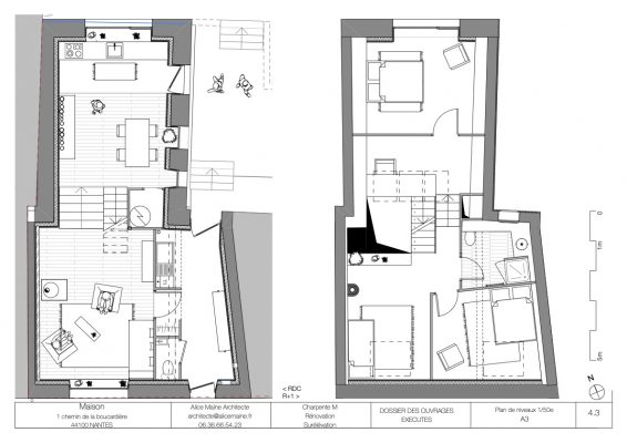Rez-de-chaussée (à gauche) et étage (à droite) après les travaux. ©Alice Maine