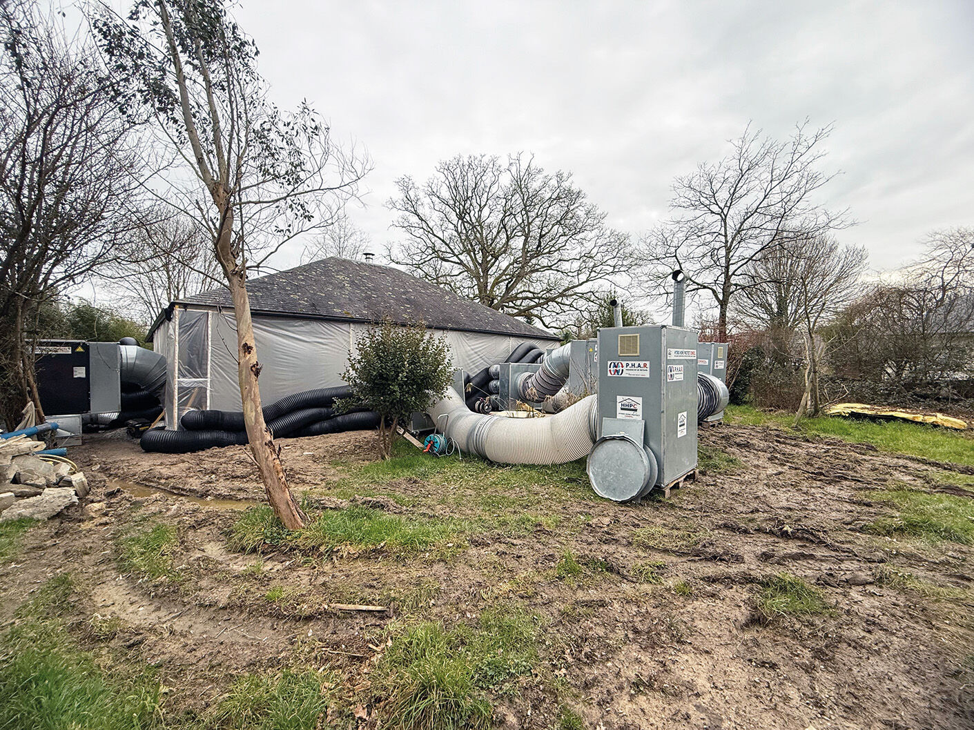Première chose à faire : supprimer l’arrivée d’eau. Ensuite, vérifier l’ampleur des dégâts, donc retirer des matériaux et, souvent, les remplacer. « Les isolants fibrés se recroquevillent sur eux-mêmes quand ils sont mouillés. Cela crée un pont thermique qui accentue le phénomène d’humidité, explique Philippe Kloos, assistant à maîtrise d’ouvrage de la coopérative Petra patrimonia. Mieux vaut ne pas essayer de les faire sécher, car on ne sait pas à quel point ils ont perdu leur efficacité. » Idem pour le revêtement en plâtre ou gypse dès qu’il a gonflé ou moisi. Toutefois, nettoyer des moisissures sur des surfaces reste possible.