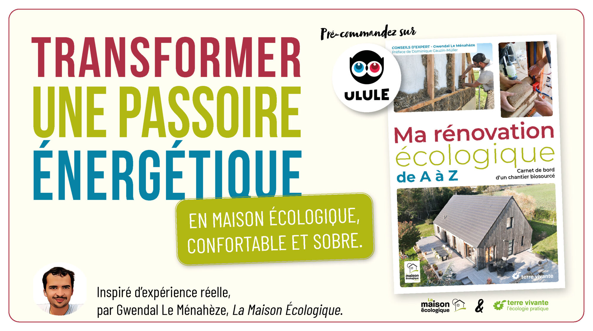 En complément de votre libraire préféré, nous sommes très heureux de vous annoncer le lancement de la prévente Ulule de notre prochain livre, réalisé en coédition avec Terre Vivante, maison d'édition emblématique de l’écologie pratique, écrit par notre rédacteur en chef adjoint Gwendal Le Ménahèze, préfacé par Dominique Gauzin-Müller architecte-chercheuse à l'association Frugalité Heureuse.