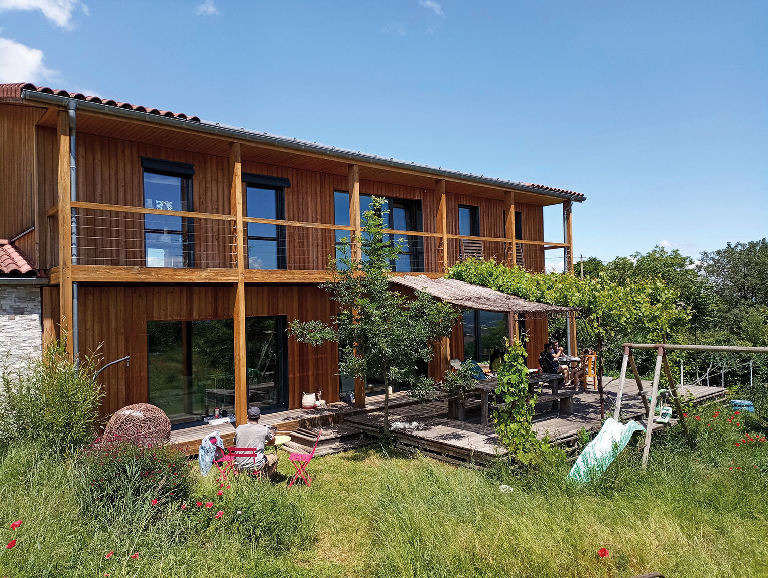 Depuis 11 ans, Liane, Robin, Meiline et Gontran prouvent que l'on peut construire autrement, et surtout vivre loin des clichés d'une vie individualiste en maison de campagne. Ensemble, ils ont su adapter leur bâtiment aux aléas qui se sont présentés.